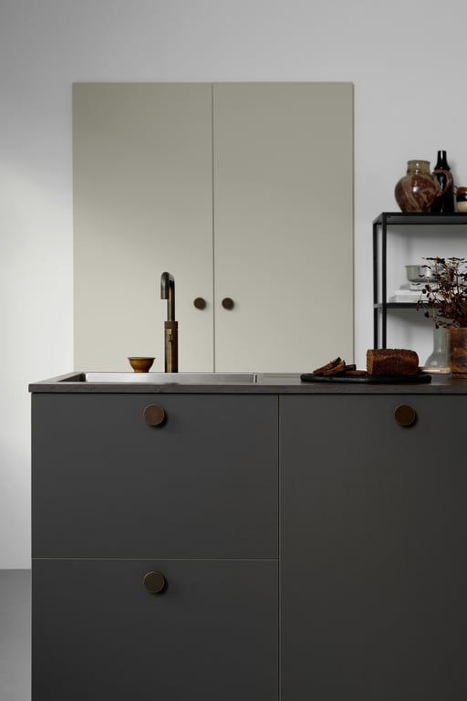Circle ist ein Knopf in einer reinen, massiven Form, der sich von der Schrankfront zum Benutzer hin erhebt. Ein einfaches Design mit einer klaren, runden Vorderseite und einer weichen, abgerundeten Rückseite, die in der Hand liegt. Eine breite Auswahl an Materialien macht die Serie der einfachen und doch einzigartigen Knöpfe aus, die es Ihnen ermöglichen, jedem Schrank einen individuellen Charakter zu verleihen. Der Griff zeigt seine Schönheit, wenn er wiederholt wird und den Charakter der Materialien hervorhebt.